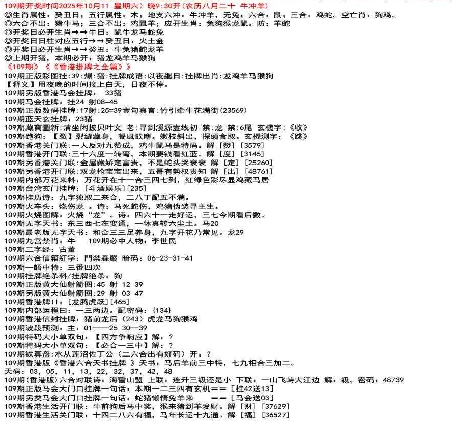 111期香港版《香港六合天书挂牌 》天书:二六邪恶穿空洞,选择三九退七格。天码:03,15,39,27,09,29,49