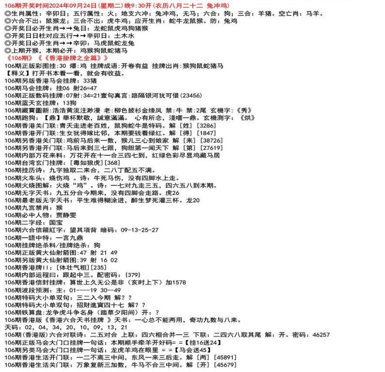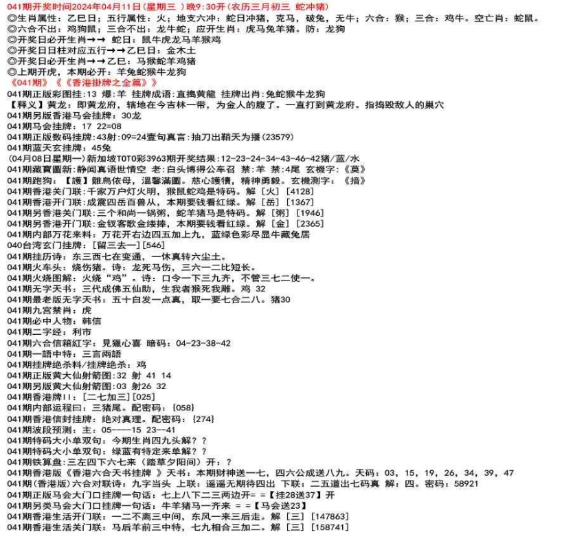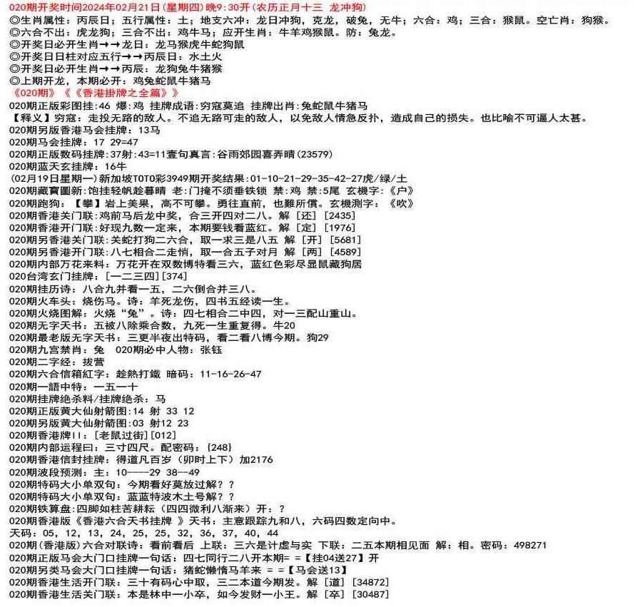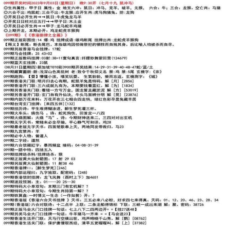 111期开奖时间2022年12月29日(星期四) 晚9:30开 (腊月初七 龙冲狗)